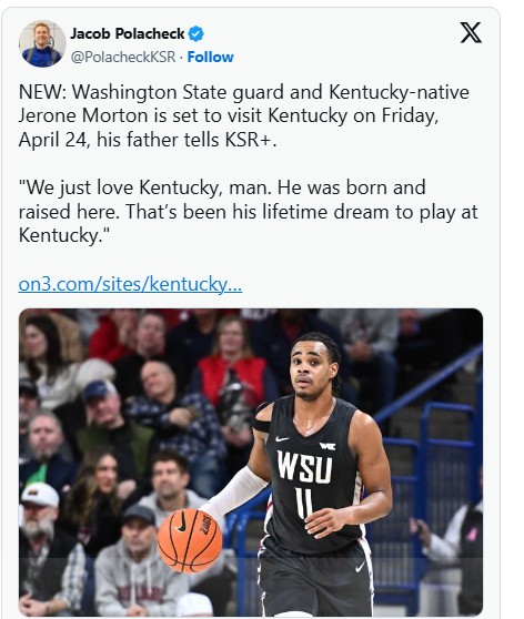 Washington State shooting guard is scheduled to take an official visit to Kentucky on Friday, April 24, according to KSR’s Jacob Polacheck. For fans hoping Mark Pope continues adding skill, shooting, and depth to the roster, this is a development worth watching closely.