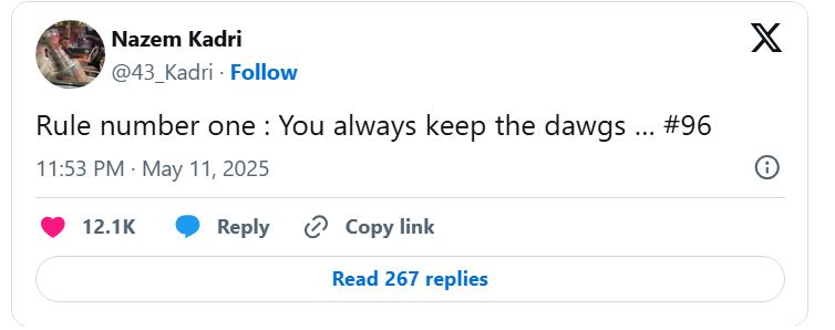 Kadri seems to be subtly suggesting that the Avalanche should have kept Rantanen, as shown by his use of “#96”. In a humorous twist, the Dallas Stars’ Twitter account responded to Kadri’s post with a dog emoji.