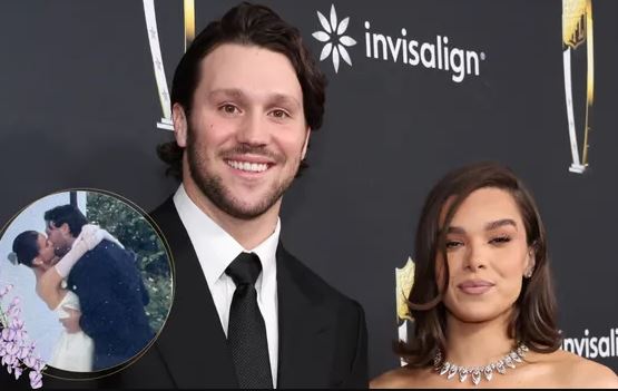 Josh Allen married Hailee Steinfeld on Saturday in a stunning ceremony. Allen looked sharp in a traditional black tuxedo, while Steinfeld turned heads in a strapless white gown featuring a sweetheart neckline and a flowing train. She completed her elegant look with white opera gloves, a tulle veil, and her hair styled in a classic bun. Instead of the typical bouquet, she carried a single flower down the aisle, pairing it with understated jewelry for a touch of refined glamour.